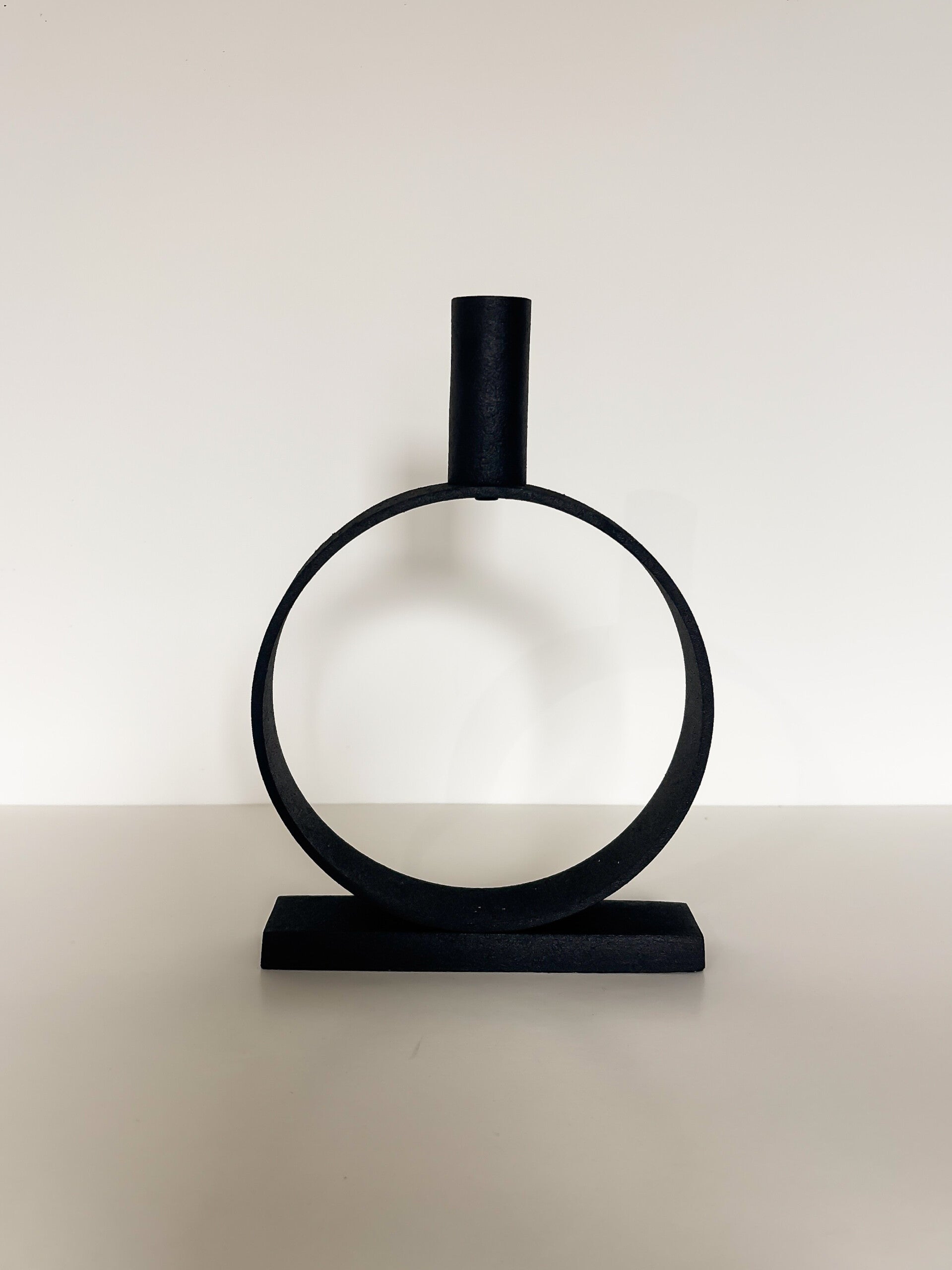 Een stijlvolle en kaarshouder met een cirkelvormig design, in het mat zwart.
